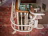 When I arrived to assess, I noticed that the stairs were spiral in shape and ornately detailed. I suggested an inner bend configuration. This would enable them to embark/ disembark from the chair away from the stairs.