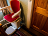 They were able to confirm that the stairlift would fit and that our client could use the lift safely. We fitted our Stannah curved stairlift with Starla Chair and red cloth upholstery with light wood surround.