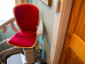 Curved Stannah Sairlift with Starla Seat with light wood trim and red cloth Upholstery