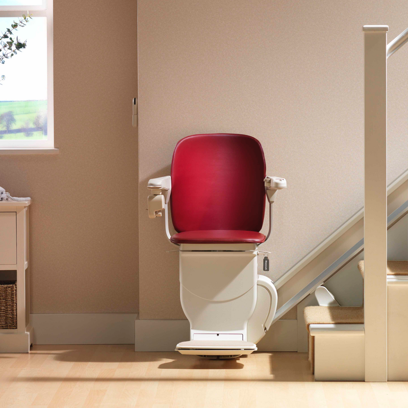 Our straight rail Stannah Stairlifts feature a slimline rail and fold away chair for minimum footprint. They offer a range of stylish vinyl and fabric upholsteries available with or without wood trim and easy use seatbelt.